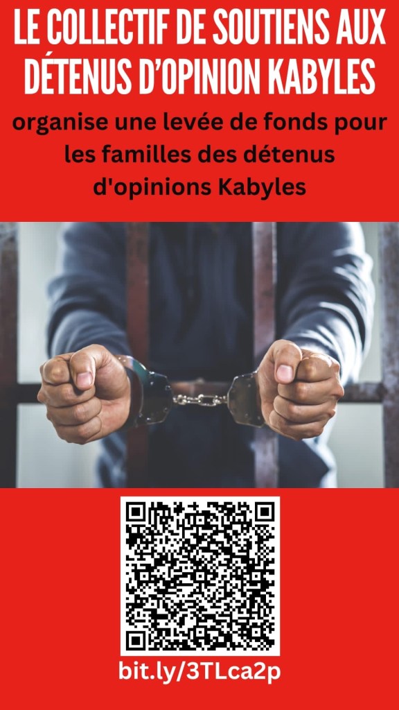 On 5th January 2024, an online fundraising campaign was launched by a group of Kabylia’s self-determination activists living in the United States, to help and support the Kabylians families, victim of the Algerian dictatorship regime, which has imprisoned arbitrarily their relatives, simply because they have expressed their universal right of self-determination. Most of the detainees are parents, their kids are in desperate need for some income to sustain themselves and to have a normal life as usual!